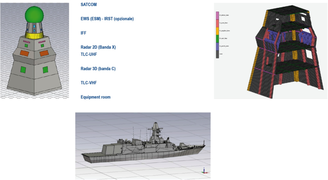 Studio di un “albero integrato” (MAST) per il Sistema Navale Militare che miri alla riduzione degli attuali conflitti tra le apparecchiature (antenne e sensori) e al miglioramento delle performances generali, tramite la soluzione di molti problemi tecnici. Il progetto permette il superamento delle soluzioni attuali di compromesso tra le apparecchiature a fronte di un approccio progettuale più moderno e competitivo, non basato su compromessi, ma in linea con le strategie estere.